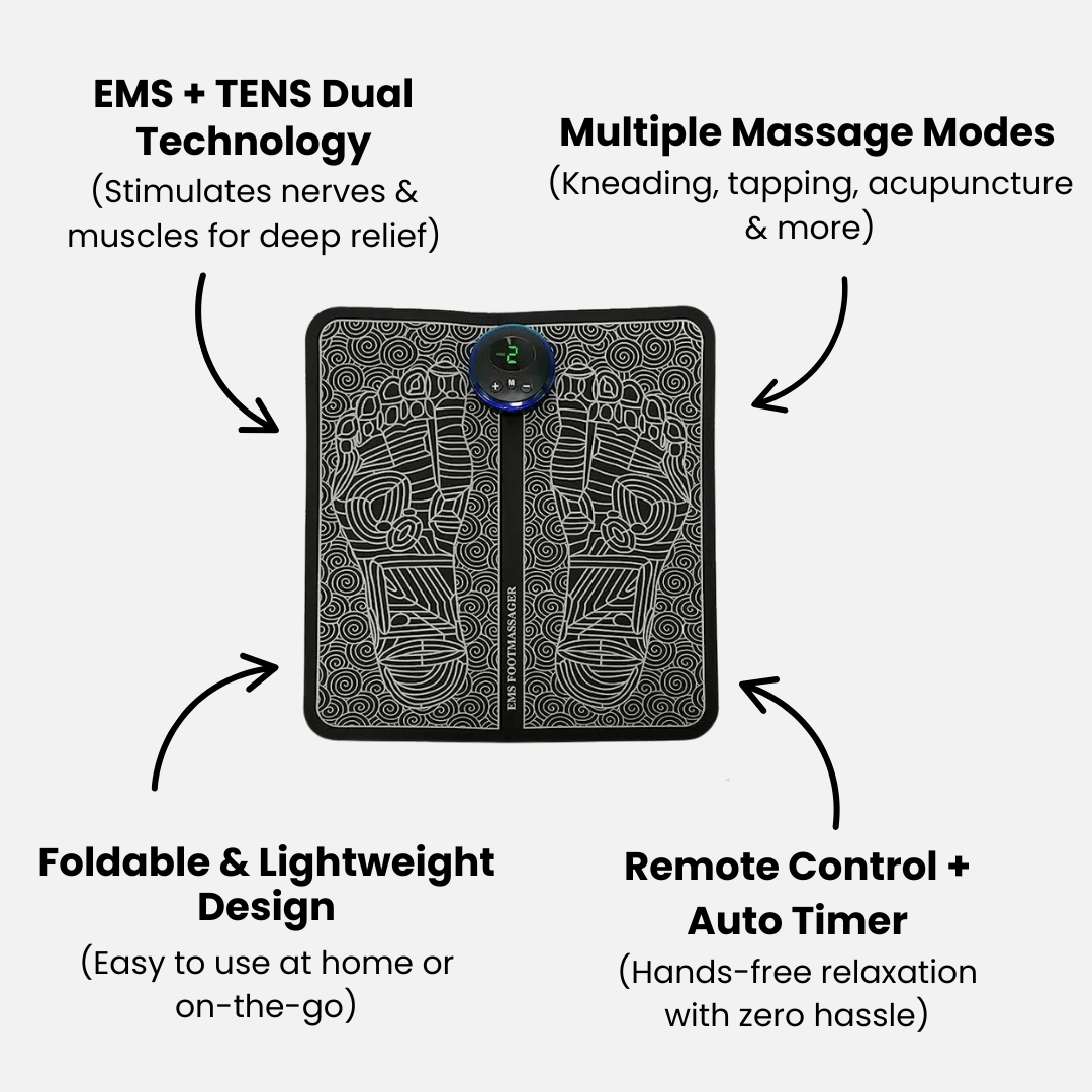 Enhance foot health and experience complete relaxation with the ZenTec Smart Massager. This EMS device stimulates foot muscles, reducing soreness and increasing blood flow for all-day comfort. Perfect for those who spend hours on their feet, it delivers soothing relief with every session.