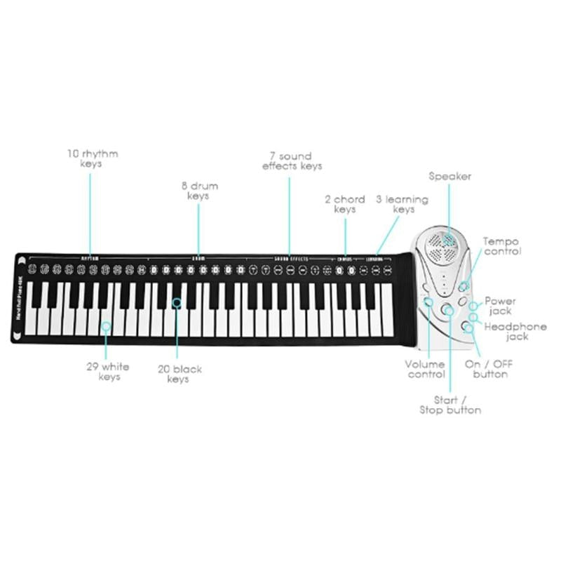 Compact and Stylish Design: This keyboard piano goes wherever you go. The keys are made of soft silicone rubber, allowing you to roll it up neatly and store it away without any damage.